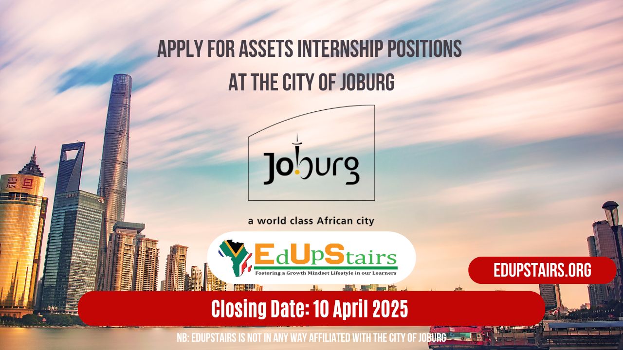 The City of Joburg invites suitably qualified applicants to apply for their Assets Internship Positions. The closing date for applications is the 10th April 2025